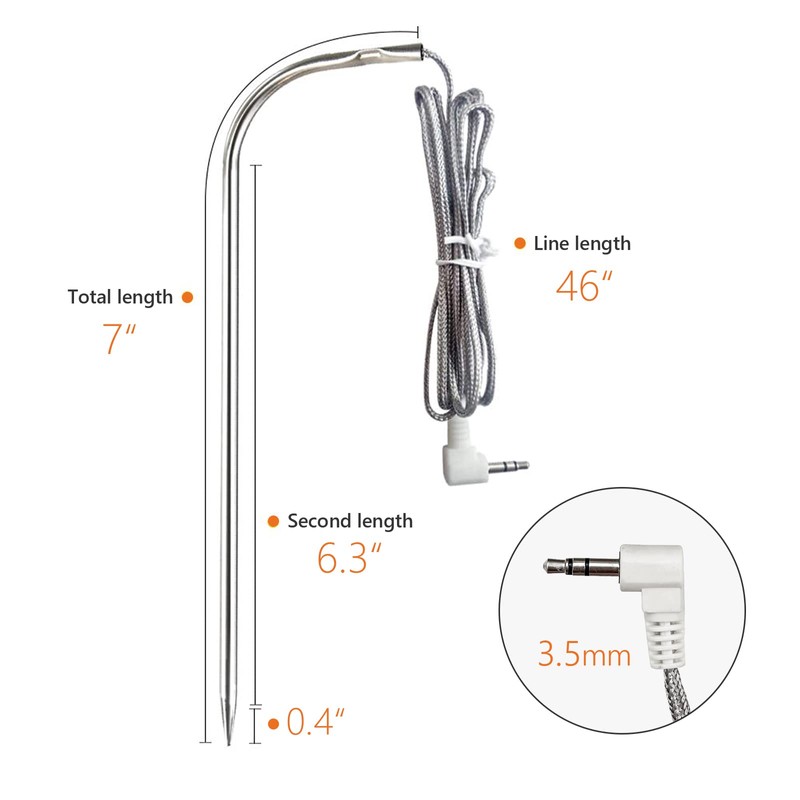 • 3.5mm (1/8 in) plug for use with all meats, great replacement probe and/or additional probe.