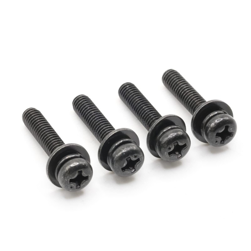 A complete set of TV stand replacement screws for your Insignia NS-55DF710NA19. One set of metric screws, four screws in total. Four black machine screws.