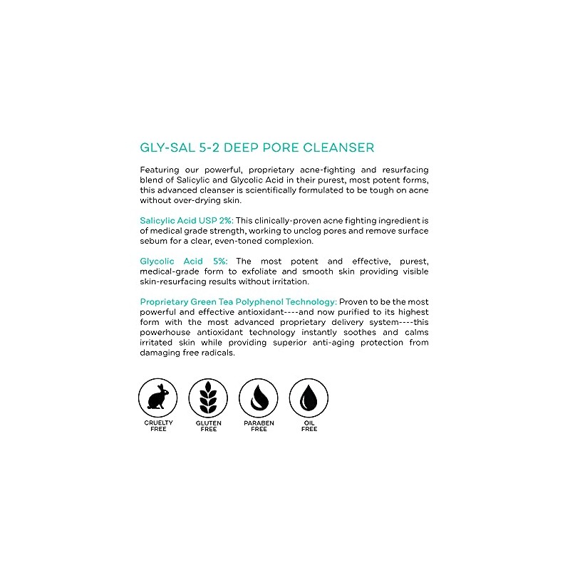 - This exfoliating cleanser with 5% glycolic acid and 2% salicylic acid gently cleanses the skin and removes buildup, keeping your complexion free of breakouts, blemishes and other unsightly signs of acne