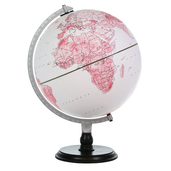 • Raised relief feature creates illusion of pink colored countries floating in white velvety oceans