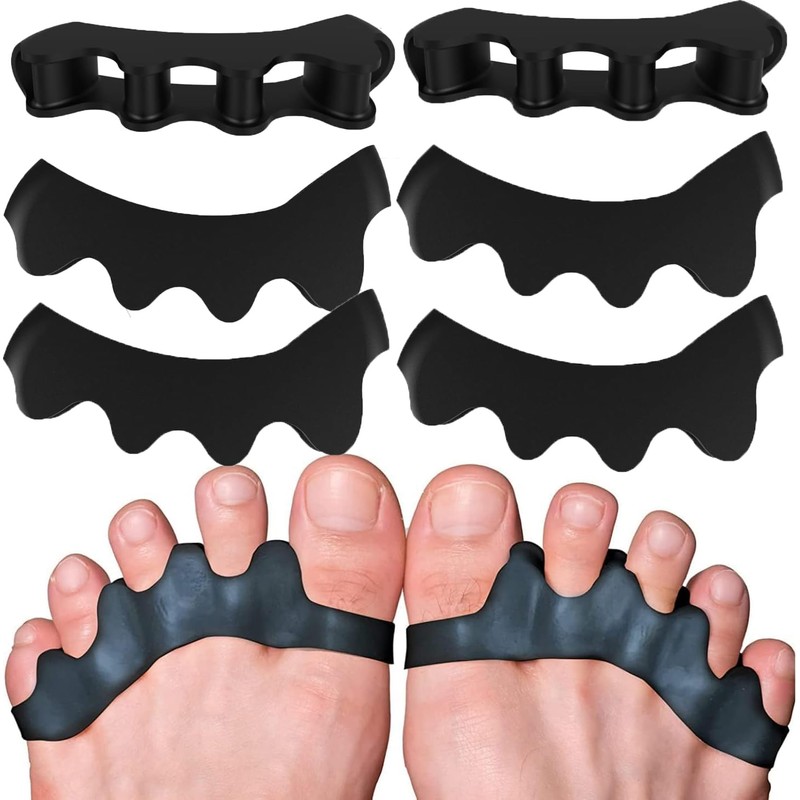 - 包装は以下を含む:6個の黒いゲル足指支持パッド
