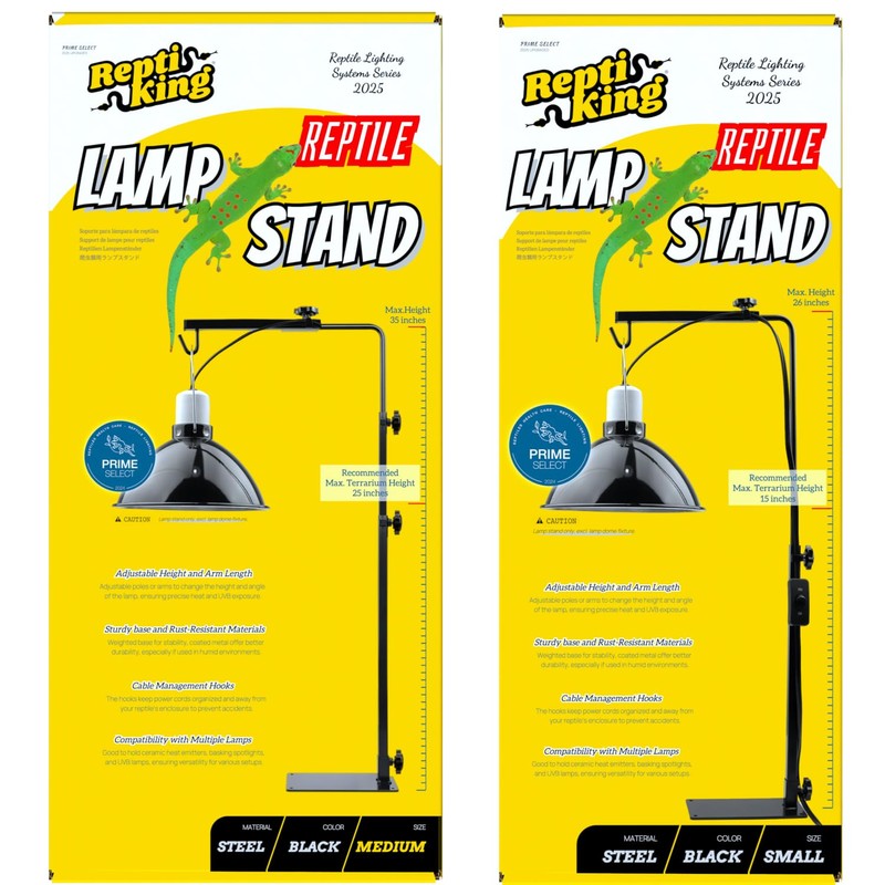 - The lamp stands offer adjustable poles or arms to change the height and angle of the lamp, ensuring precise heat and UVB exposure.