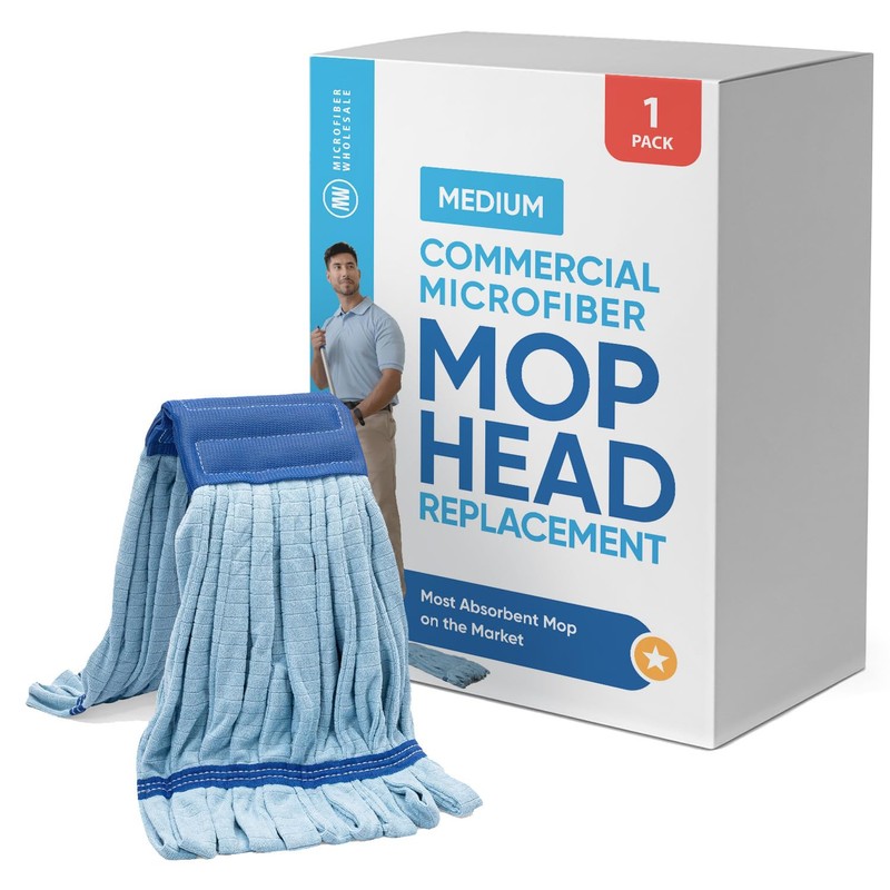 Repuesto de cabezal de fregona comercial – fregona de tubo de microfibra mediana (14 onzas) | mopas húmedas industriales | cabezales de recambio, lavable a máquina, resistente | madera dura, azulejos, laminado, suelos de vinilo (azul)