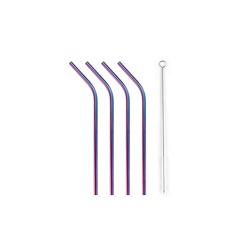 REQUISITE NEEDS 4 x Reusable Colourful Drinking Bent Metal Straw (Purple)