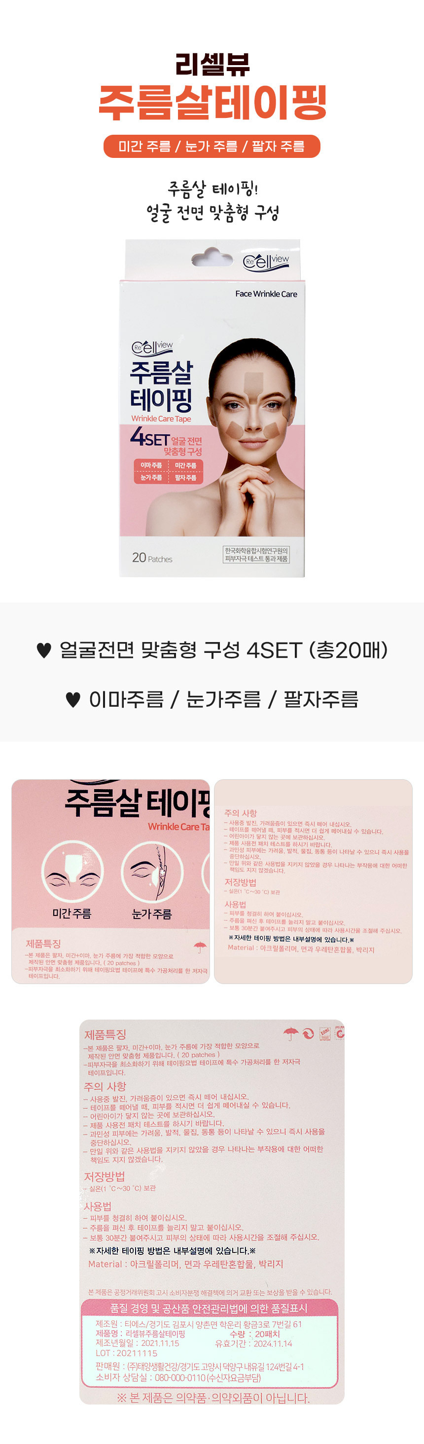 Resale View Wrinkle Taping 20 Sheets Between Eyes and Eyes / 리셀뷰 주름살 테이핑 20 매 미간 눈가 팔자