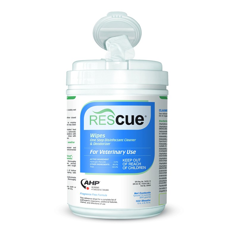 REScue One-Step Disinfectant Cleaner & Deodorizer for Veterinary Use, EPA Registered Accelerated Hydrogen Peroxide, No Added Fragrance, Standard Size 6x7-Inch Sheets, 160-Wipes Canister (Pack of 1)