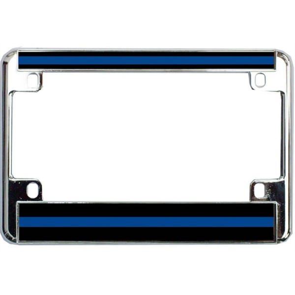Rescuetees Thin Blue Line Motorcycle Lic Plate Frame Chrome