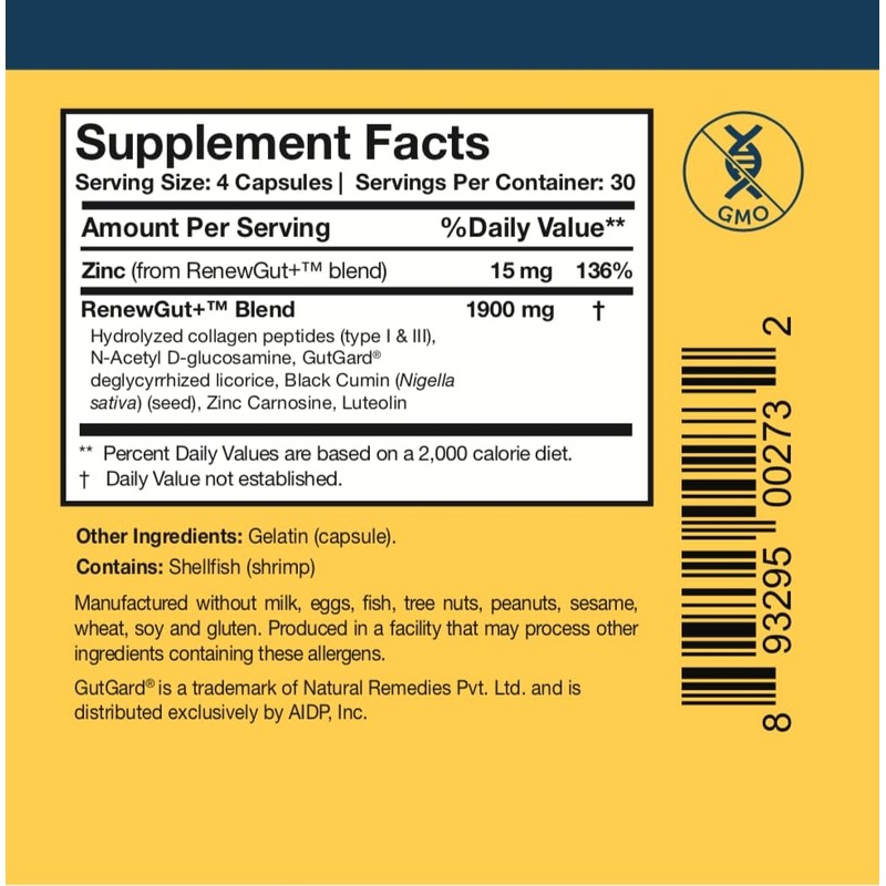 - Renew & Optimize GI Function - Combines multiple mechanisms action to support a healthy gut, strengthen the gut lining, nurture the mucin layer, and promote optimal digestive health.*