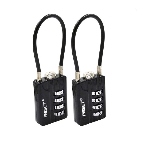 RESET -200 4-Digit Combination Lock with 10 cm Wire Rope, High Security Lock, Suitable for Luggage, Gun Case, Tool Box, Helmet, 2 Pack