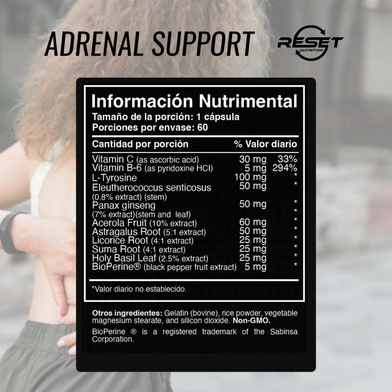 Reset Nutrition Adrenal Support Suprarrenal Energía 60 Cáps Sabor Sin sabor