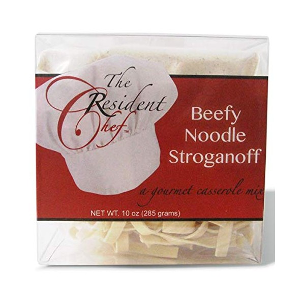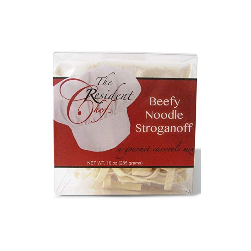 This package of Beefy Noodle Stroganoff casserole mix is a great start to creating a delicious meal. It includes everything you need except your choice of meat. Marketed by The Resident Chef.