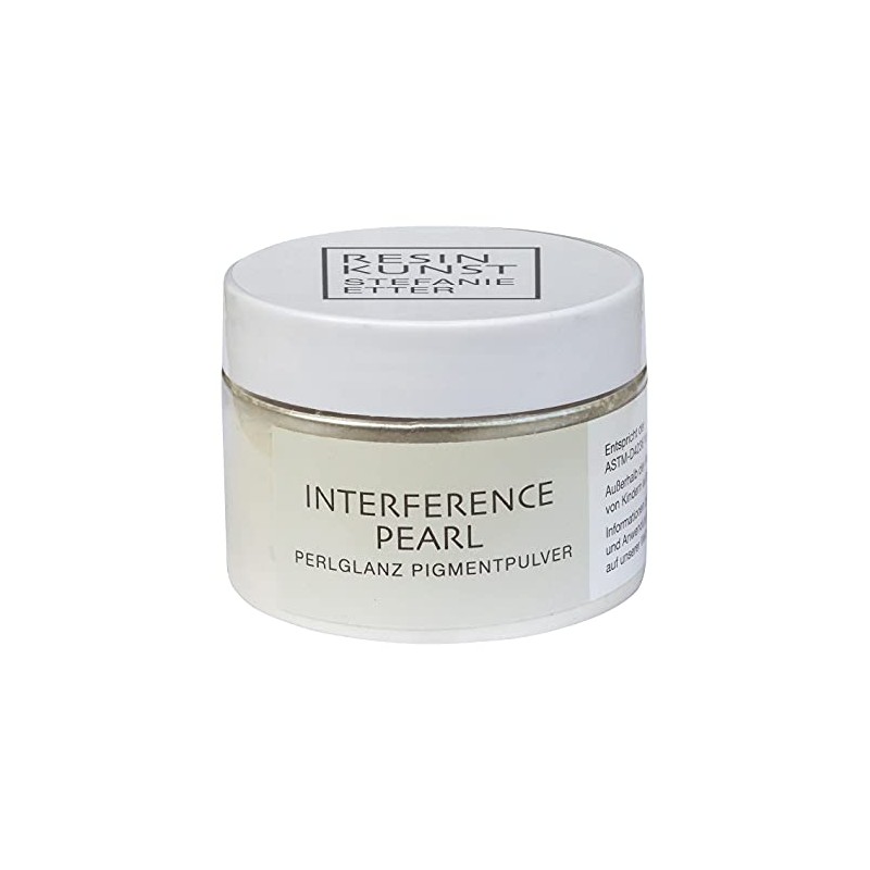 Pearlescent pigment powder 50 g, interference pearl. With our high-quality pearlescent pigments, you can conjure up great optical effects on your work of art in the resin. The shine of the pearlescent pigments is fascinating. They create effects equivalent to that of pearl or mother of pearl. The pearlescent pigments are highly lightfast special mica. In an elaborate process, thin mica plates are coated with titanium dioxide and/or iron III oxide. Decorate surfaces, mix with opaque colours to add shimmer. You can also mix the pearlescent pigments together to create new shades.