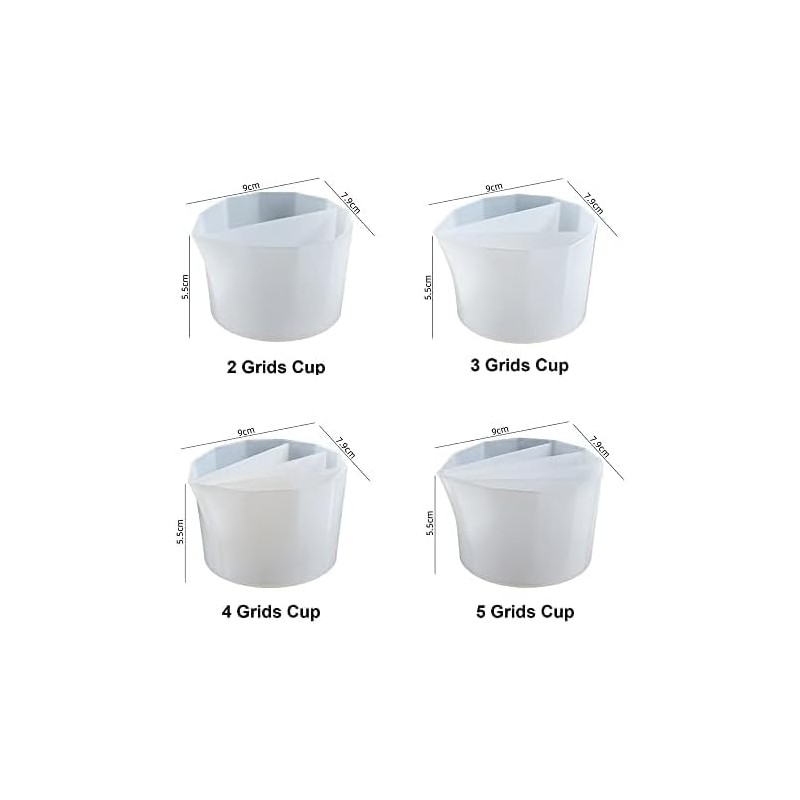 Resin Split Cup Set, Silicone Mixing Cups for Fluid Art, Acrylic Pouring, Resin Crafts Casting Supplies, Easy-Pour Spout (3 Grids Cup)