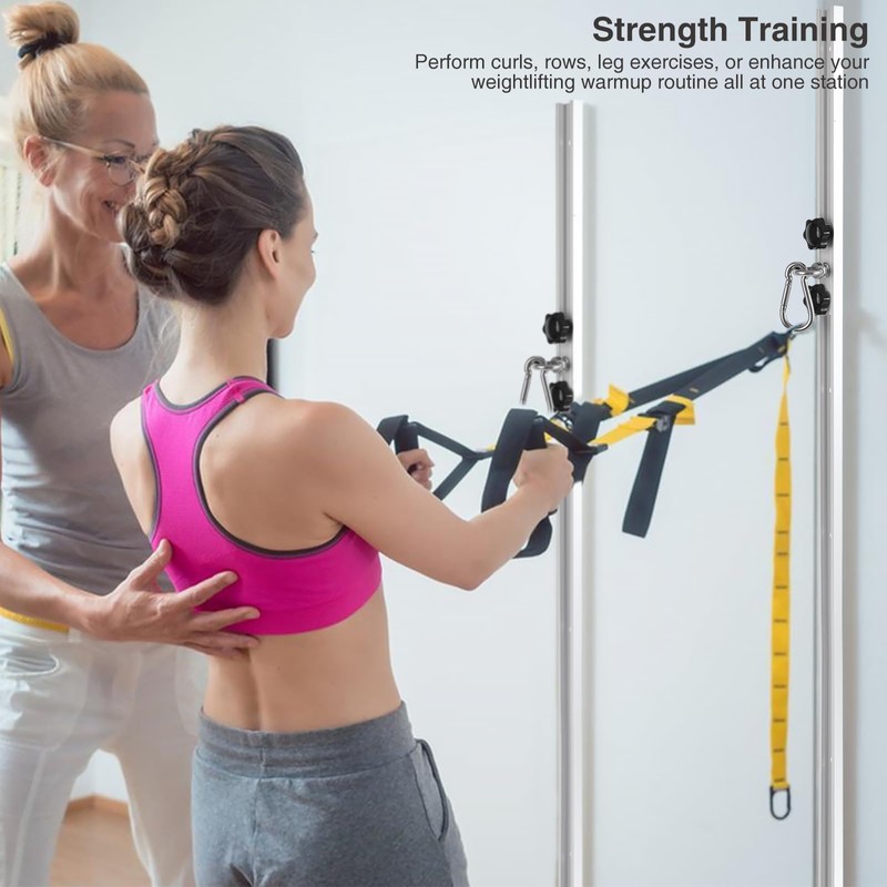 - Space-saving; Say goodbye to bulky gym equipment that takes up valuable space at home or gym, resistance band wall anchors provide a compact and efficient solution for your fitness needs, simply install it on any sturdy wall or door, and you can instantly transform any space into your personal workout area, improving safety and stability