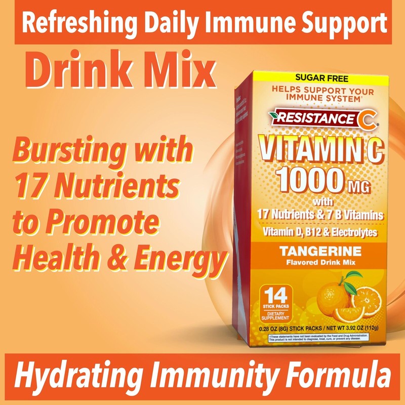 Resistance C Vitamin C & Electrolyte Stick Packs, Tangerine Flavor, 14 Ct
