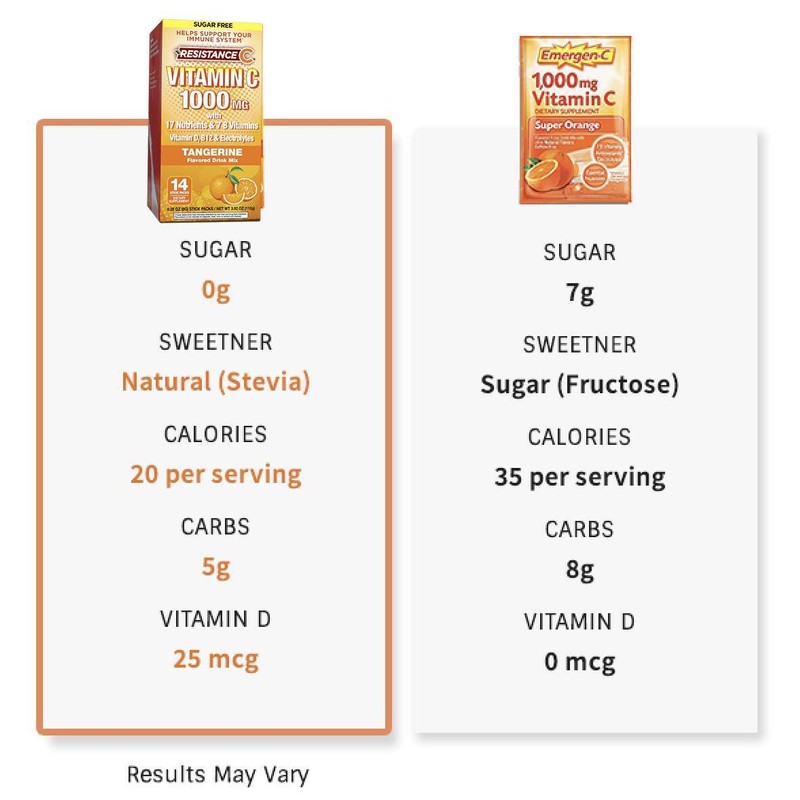 - WHAT’S INSIDE EACH BOX – Each box of Resistance C Stick Packs contains 14 flavorful stick packs to keep you energized and hydrated for hours. Each serving contains 1,000 mg of vitamin C, 7 B-vitamins and 16 nutrients!