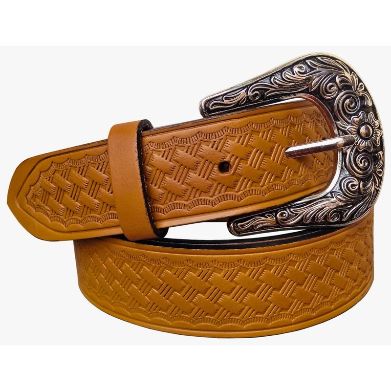 - 🔹 HAND EMBOSSED FULL GRAIN LEATHER STRAP: Designed from premium quality leather, this men's belt strap features a rugged hand-tooled finish with a vintage floral pattern for a refined Western look.