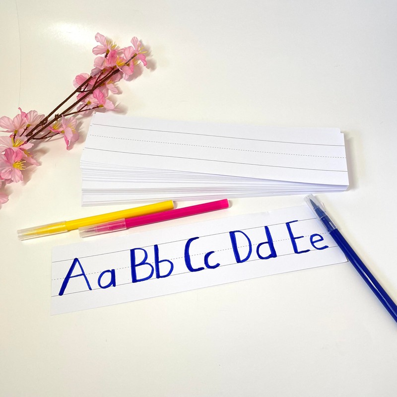 - 100 pack of ruled sentence strips, 3 inches by 12 inches