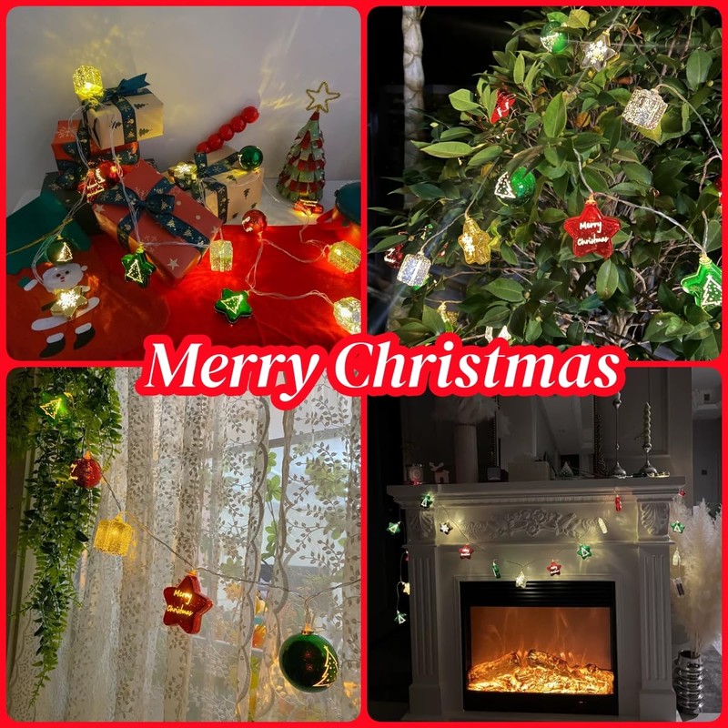 - CUTE CHRISTMAS DECORATIONS: The 10ft long Christmas light string has 20 LED lights with unique star snowflake, Christmas tree and ball design. Perfect for creating a Christmas holiday atmosphere and will be the finishing touch to Christmas decorations.
