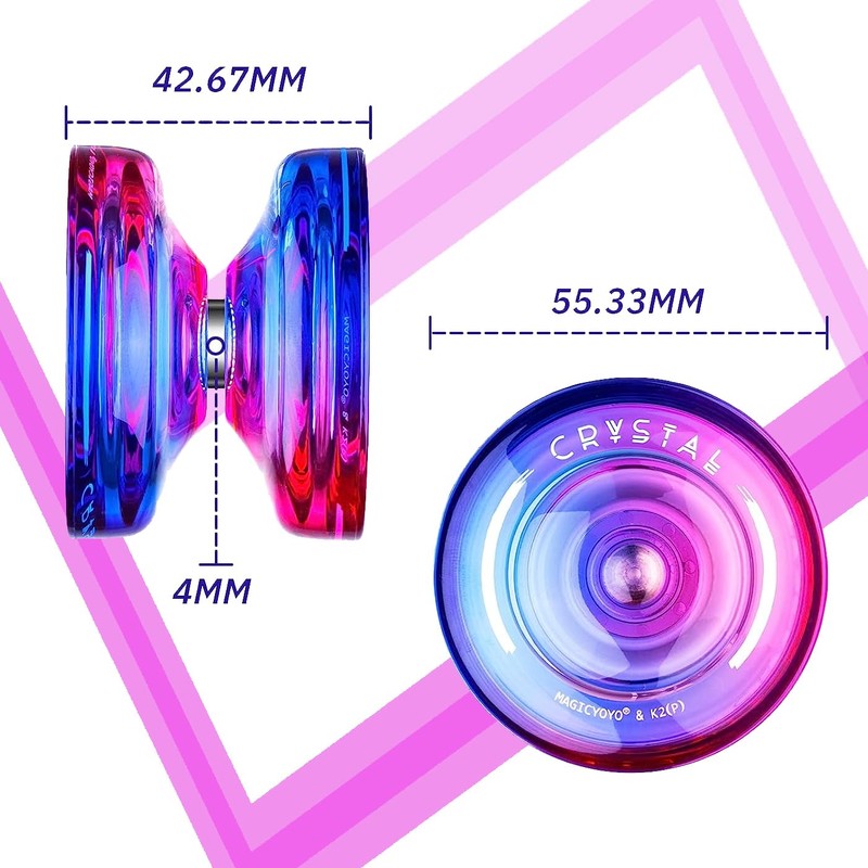 - ⭐【High Quality Material】: Plastic yoyo K2 made of high quality PC material. Lightweight but super solid and durable to use, safe for kids to use. Beautiful Crystal Colors, Ideal gift for kids, friends, beginners, family, as Holiday Birthday gift! The YOYO CRYSTAL is a great choice for beginners especially if you want to learn finger spins yoyo tricks.