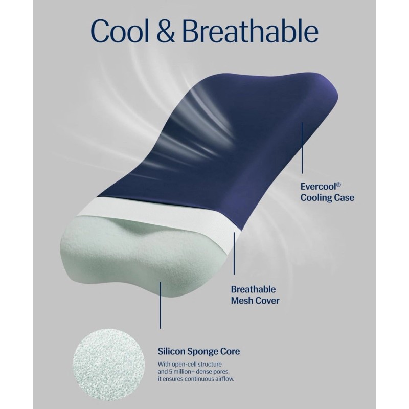 Optimized Airflow with Micro-Pores: Featuring a silicone sponge core with over 5 million micro-pores, this pillow ensures continuous airflow and enhanced breathability to prevent heat buildup and maintain a consistently cool sleeping experience, remains cool longer than memory foam and latex pillows.