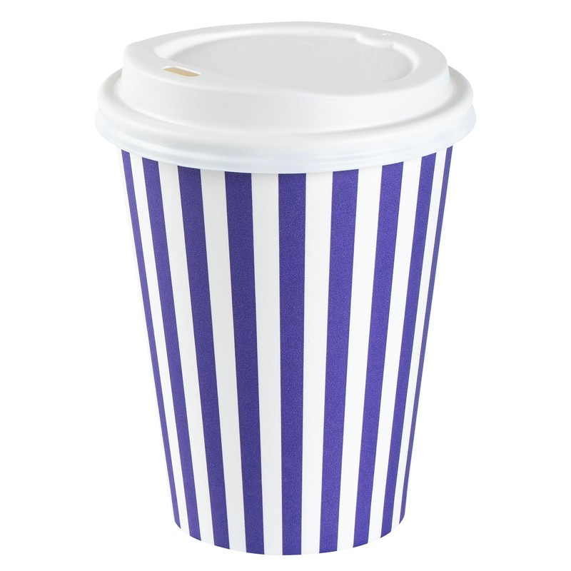 - STYLISH STRIPE FINISH: Add a pop of color to your morning! These purple and white striped disposable hot cups add a splash of style to your coffee routine. Brighten up your day!