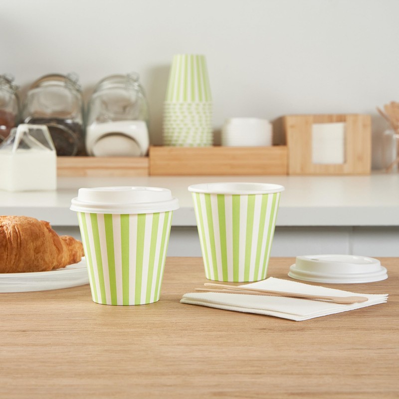 • STYLISH STRIPE FINISH: Add a pop of color to your morning! These green and white striped disposable hot cups add a splash of style to your coffee routine. Brighten up your day!