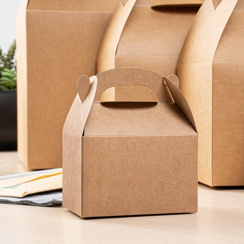 - STYLISH LOOK: Featuring a kraft finish, these gable boxes for party favors provide a sophisticated yet elegant look to your gifts. Customize the surface with your personalized branding or designs.