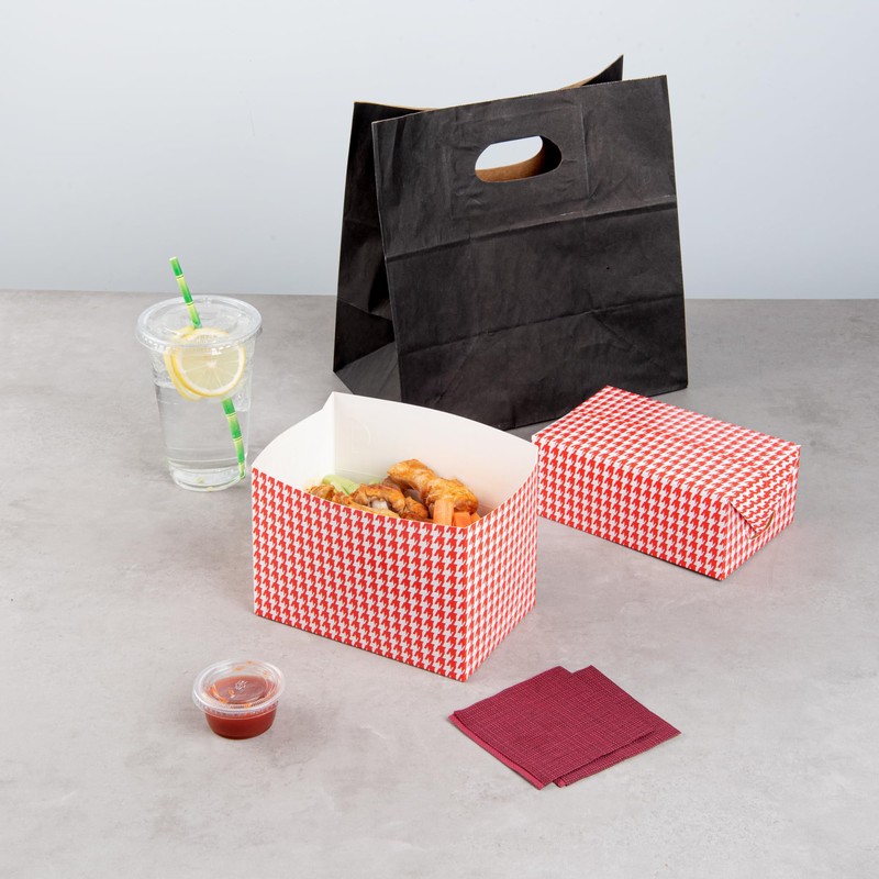 - EYE-CATCHING HOUNDSTOOTH DESIGN: Stand out from the crowd! The red houndstooth design of these bakery boxes adds a stylish touch to your food packaging, perfect for any event.