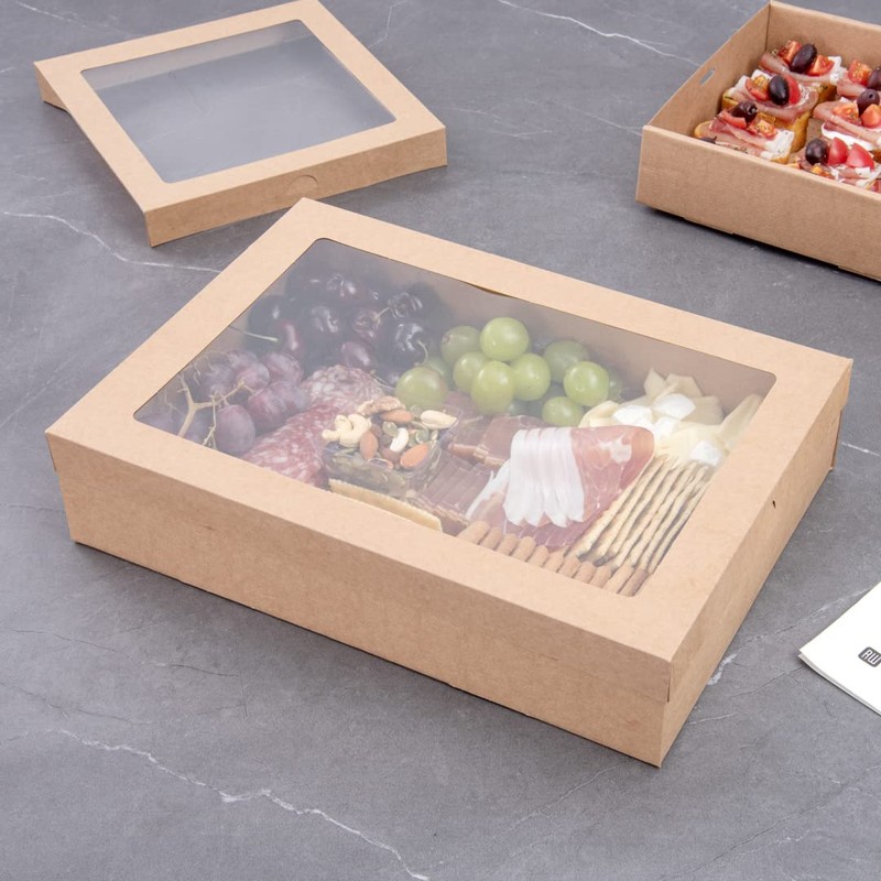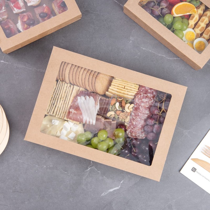 - COVER ON-THE-GO SNACKS: With included window lids, these kraft catering boxes allow you to cover packed to go orders without sacrificing food presentation. Give guests a sneak peek!