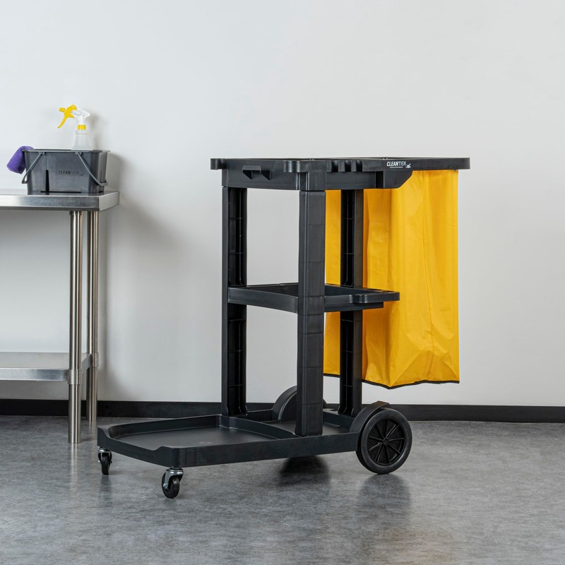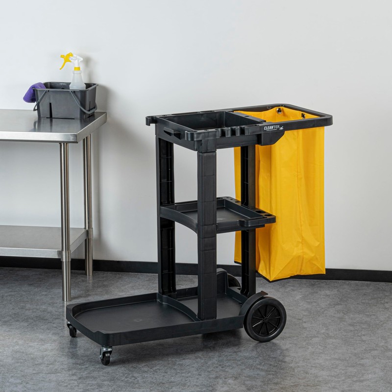 - MAXIMUM EFFICIENCY: With 3 shelves, this commercial cleaning cart offers room for cleaning supplies and equipment, ensuring everything is at your fingertips. Cleanup has never been this easy!