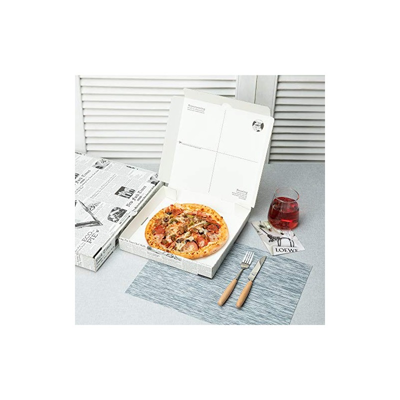 - STYLISH NEWSPRINT FINISH: Designed with a newsprint finish, these pizza delivery boxes enhance your pizza presentations and instantly grab the attention of guests. Make headlines with these boxes!