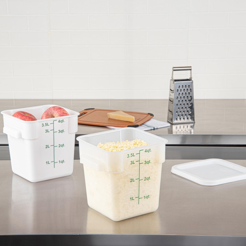 - DURABLE & VERSATILE: Crafted from durable PP plastic, this 4-quart square translucent container is designed to withstand wear and tear. Perfect for storing a variety of food items.