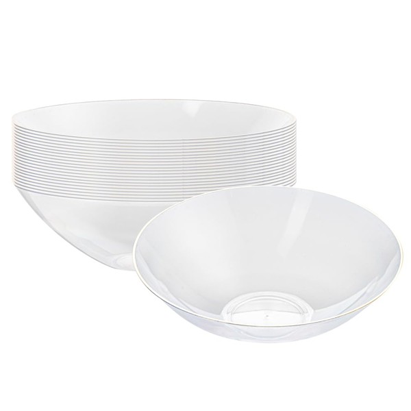 - GOLD-RIMMED: Spruced up with a lustrous gold rim, these premium quality plastic bowls enhance the look of the food presentation at your banquets and catered events. Make a statement!