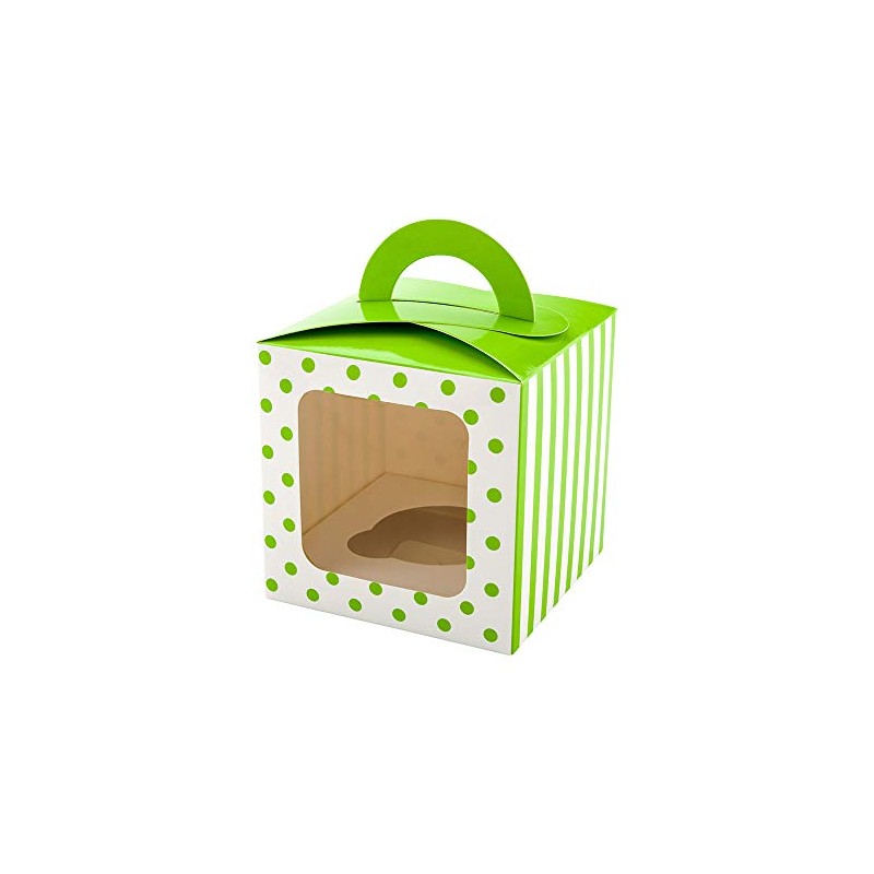 - EYE-CATCHING DESIGN: Featuring colorful polka dots and stripes design, these cute green cupcake boxes beautifully display your sweet cupcakes. Effortlessly enhance your dessert presentation!