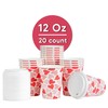 Restaurantware-Restpresso 12 Ounce Disposable Coffee Cups, 20 Valentine’s Day Cups With Plastic Lids - Red And Pink Heart Print, Rolled Rim, Paper To Go Cups, Single Wall, Serve Hot And Cold Drinks