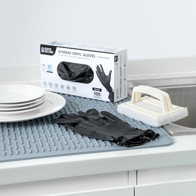 - STYLISH LOOK: Matches your cookware and cleaning supplies! Designed in a classic black finish, these vinyl gloves offer a stylish way to keep your hands protected while prepping meals.