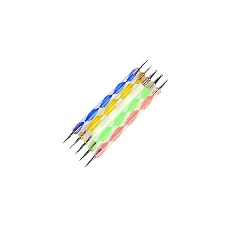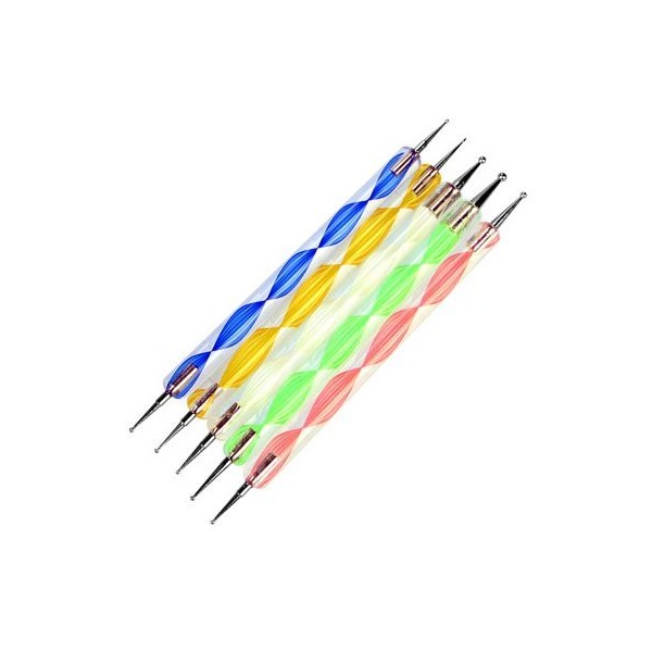 Restly(TM) 5 Nail Art Dotting Tools, Double Ended, Multi-Coloured, Marbling Tools