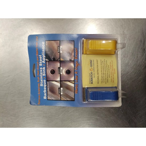 This kit has been field tested and found safe on "REAL" Stainless Steel appliances, sinks and grills. This Scratch-B-GoneTM "Mini" Kit is designed to remove common light scratches, scuffs, rust and stains within a small area. WARNING! DO NOT attempt to use the Scratch-B-Gone Mini on polished, clear coat, or chromed surfaces. This tool is intended for resurfacing of brushed "real" metal surfaces only. NEVER use on coated or imitation Stainless steel surfaces as this process will remove these protective finishes. If you do not know if your appliance has a coating, download our "Three Step Guide" at www.scratch-b-gone.com for hints and self tests. DO NOT attempt to use the Scratch-B-Gone Mini to remove deep scratches or large surface repairs, such as refrigerator doors as you will not have enough combined materials to complete the restoration. For larger or multiple repairs, use our Scratch-B-Gone Homeowner's Kit DO NOT attempt to use the Scratch-B-GoneTM "Mini" to remove deep scratches or for large surface repairs, such as refrigerator doors as you will not have enough combined materials to complete the restoration. For large or multiple repairs, use our larger homeowner version of Scratch-B-GoneTM.