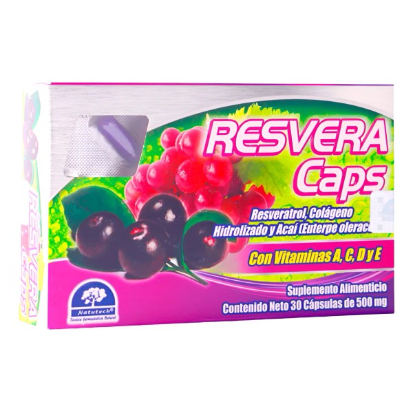 Resvera Caps Caja Con 30 Cápsulas De 500 Mg Natutech Sin Sabor