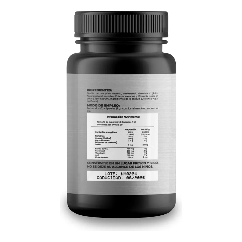 Resveratrol 100 Cáps Con Semilla De Uva, Acai Y Pimienta