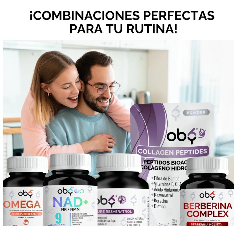 - Inmunidad reforzada: Fortificado con Vitamina C, que es esencial para el sistema inmunológico. SEMILLA DE UVA ROJA Y EXTRACTO DE ARÁNDANO: Estos ingredientes son conocidos por sus beneficios para la salud cardiovascular y su alta concentración de antioxidantes. PIMIENTA NEGRA: Contiene piperina, un compuesto natural que mejora la absorción de nutrientes en el cuerpo, potenciando los efectos de los otros ingredientes. Además, la piperina tiene propiedades antiinflamatorias y antioxidantes, lo que complementa los beneficios del Resveratrol. + OBY es una marca integral de Wellness, donde encontrarás las mejores vitaminas y suplementos, productos para el cuidado de la piel y aceites esenciales. Nos especializamos en crear fórmulas 100% seguras, efectivas y accesibles. Conoce todos nuestros productos con ingredientes de última generación. Nuestros productos están formulados por expertos con ingredientes naturales y de la más alta calidad en laboratorios certificados. Siente y nota la diferencia con OBY. Aviso legal