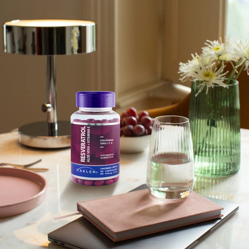 ¡Revitaliza tu bienestar con Resveratrol + Aloe Vera y Vitamina E de Maklen! 🌿💊