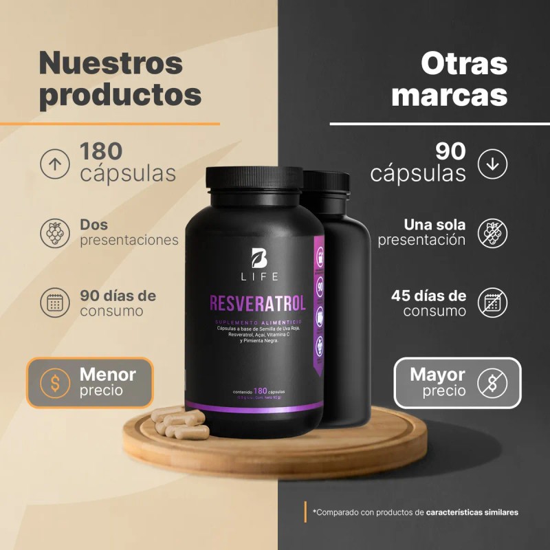 Resveratrol De 180 Cáps Con Semilla De Uva Roja Acai. B Life