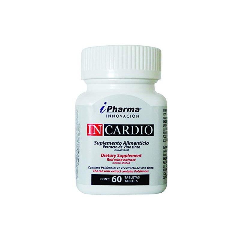 Resveratrol y polifenoles alta concentración INCARDIO, Contiene 60 Tabletas, auxiliar para disminuir triglicéridos y colesterol.