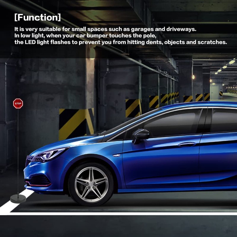 - [Function] It is very suitable for small spaces such as garages and driveways. In low light, when your car bumper touches the pole, the LED light flashes to prevent you from hitting dents, objects and scratches.