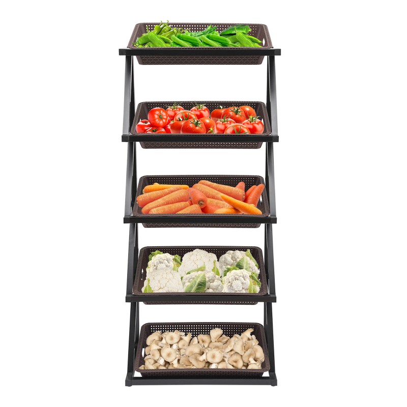 Retail Display Rack Market Shelf Fruit Vegetable Snack Basket With Five Baskets