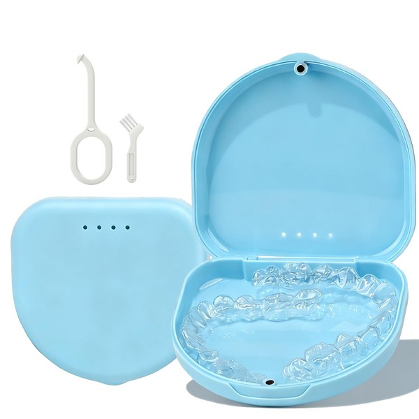 HEMILAB Retainer Case, Compatible with Invisalign, Vivera, Slim Aligner Case with Vent Holes, Portable Orthodontic Container with Removal Tool, Brush and Lanyard, Blue