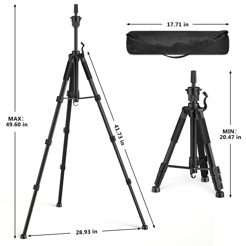 Retbtnm 54 Inch Mannequin Head Stand, Adjustable Wig Stand Tripod with Hook, Wig Styling Stand with Non-Slip Base for Making, Display, Training