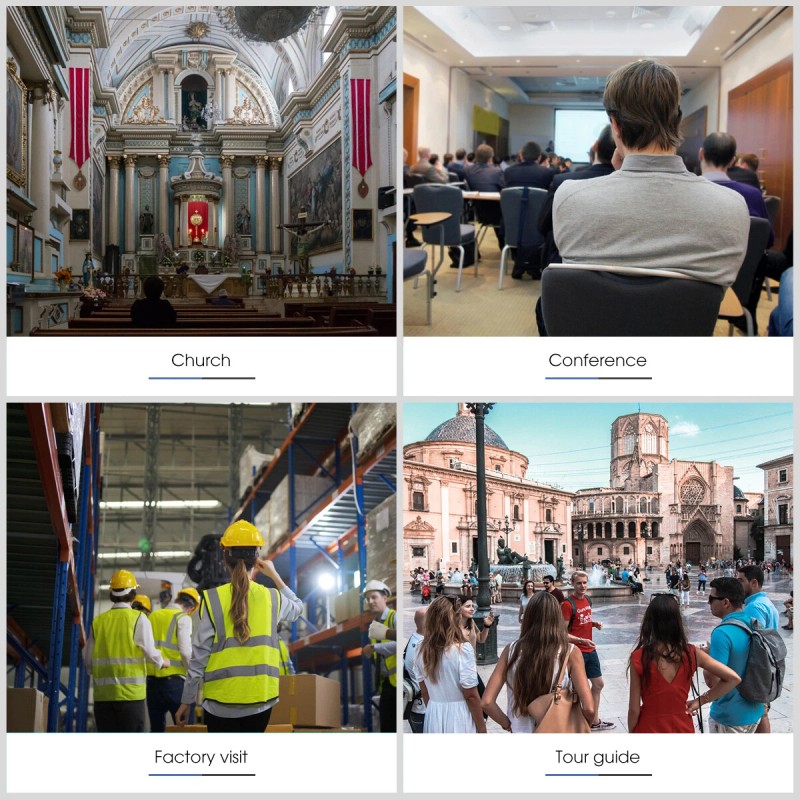 - The transmission distance of the transmitter is 50-80m. You can clearly hear the introduction of the tour guide, even you fall behind the team. (Note: The actual transmission distance is affected by the environment and the battery status).